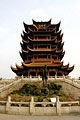 黄鹤楼几经兴废,阅尽人世沧桑。现在的黄鹤楼于1985年建成开放,巍峨壮丽,共有五层,高51.4米,黄瓦红柱,层层飞檐,四望如一。60个翘角层层凌空,72根大柱拔地而起。历代文人至此,多有题咏,尤以崔颢、李白所题之诗,千年流传,最擅胜名。